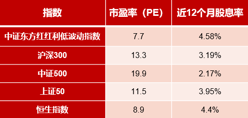 不同指数的估值及股息率对比:
