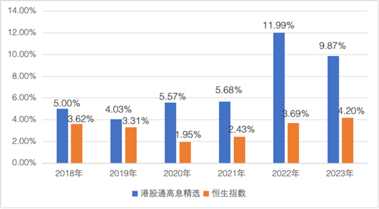 指数精选港股市场兼具高股息、高盈利、高成长性的优质公司,股息率连续4年较A股红利的代表指数更优。