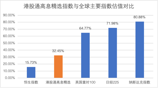 其二,相对其他地区股市,港股估值相对较低。代表港市整体水平的恒生指数估值处于全球较低水平,即使是已经有过一轮上涨的港股通高息精选指数,与海外主要股指相比也处于估值低位。