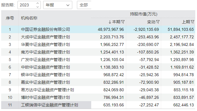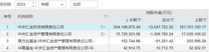 其中,“中央汇金投资有限责任公司”是主力。