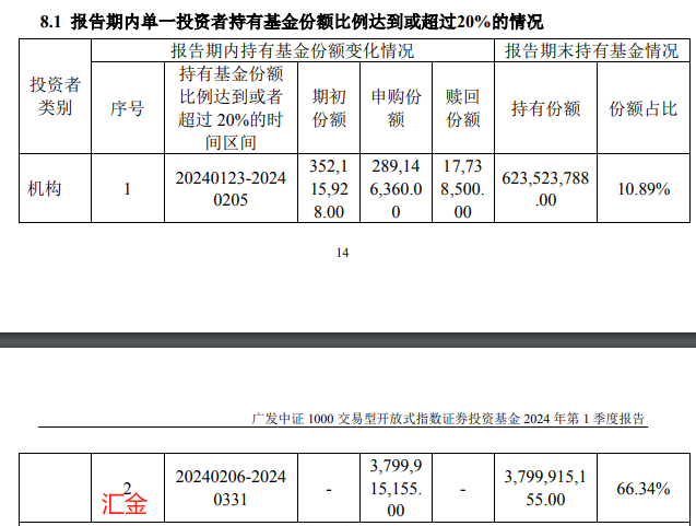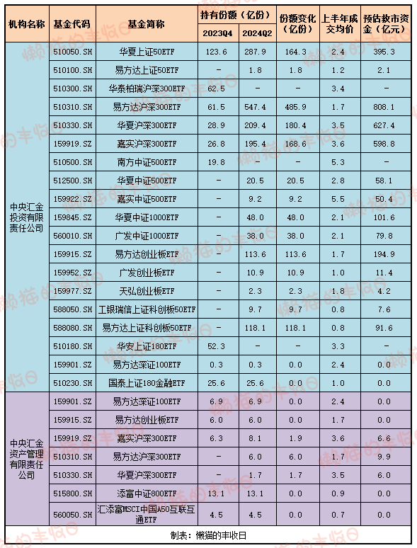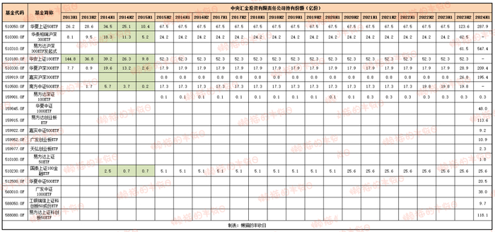 沪深300ETF,大概90%的新增份额是汇金贡献的;中证500ETF,大概80%的新增份额是汇金贡献的。