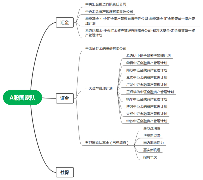 A股的国家队主要由这3家组成:汇金、证金、社保。