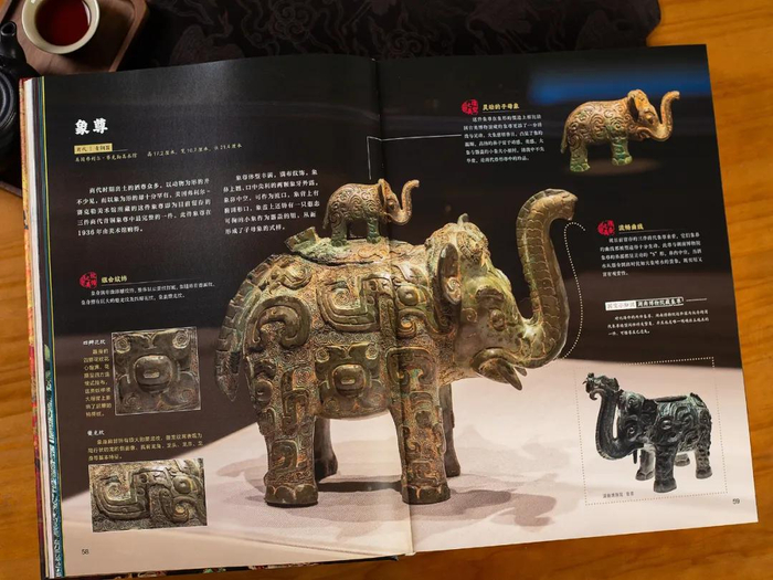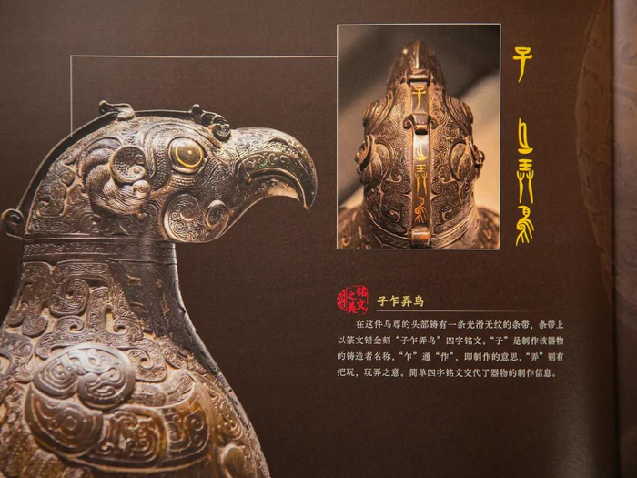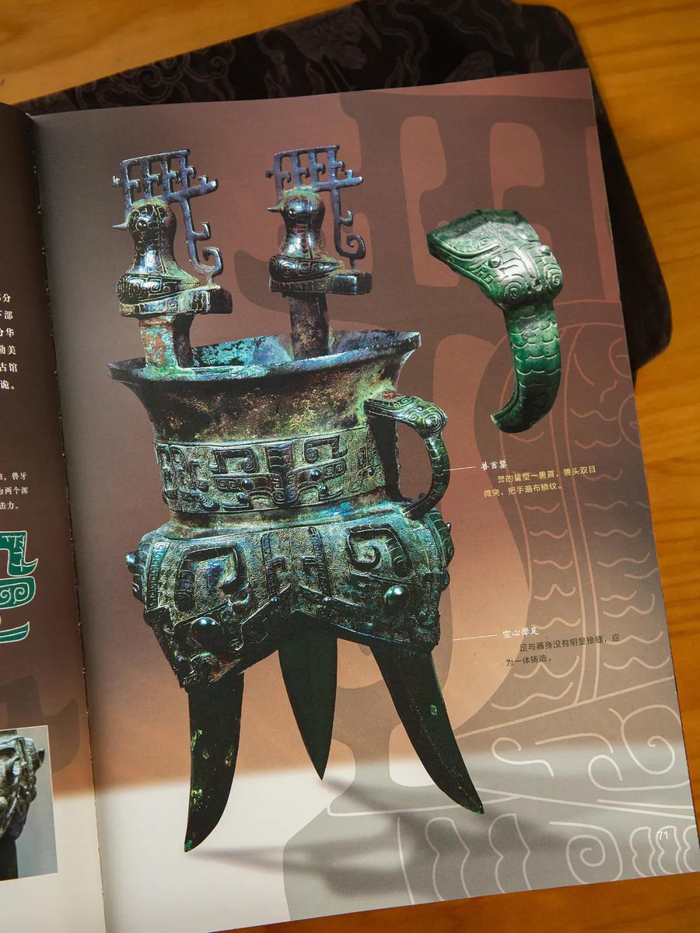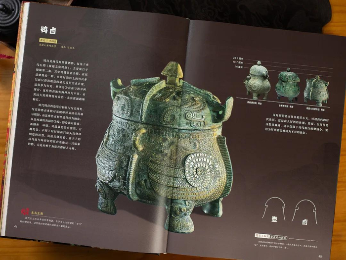 翻开书,就能看到商代时期,造型无比独特、吸睛的鸮卣青铜器。