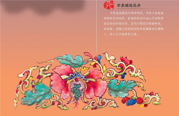 而把盆底内的缠枝花卉纹饰,高清描摹放大,才更加看清它的美。