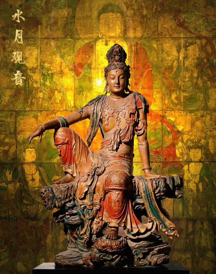 被誉为“现存中国最壮观的雕像”,辽代木雕彩绘水月观音,藏在美国纳尔逊艺术博物馆。
