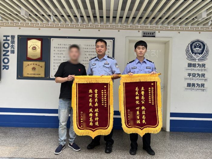 后记:阿伟特意制作了两面印有“雷霆出击 破案神速”的锦旗,专程送到了浆洗街派出所龚警官和尹警官手中以示感激。邹某、彭某等4名嫌疑人因涉嫌掩饰隐瞒犯罪所得罪,已被依法采取刑事强制措施。