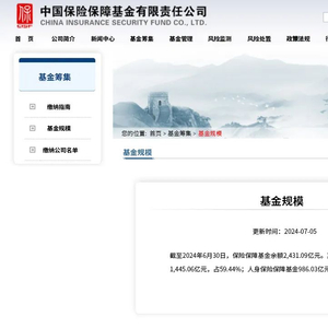 截至2024年6月30日,保险保障基金余额2431亿元。其中,财产保险保障基金1445亿元,人身保险保障基金986亿元
