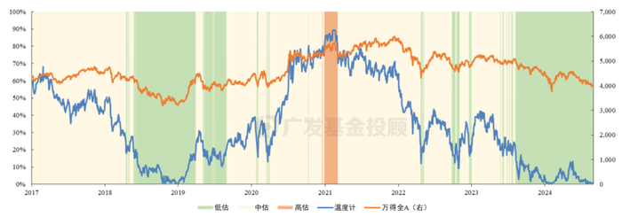 估值面:温度计处于1°左右的极端低估位