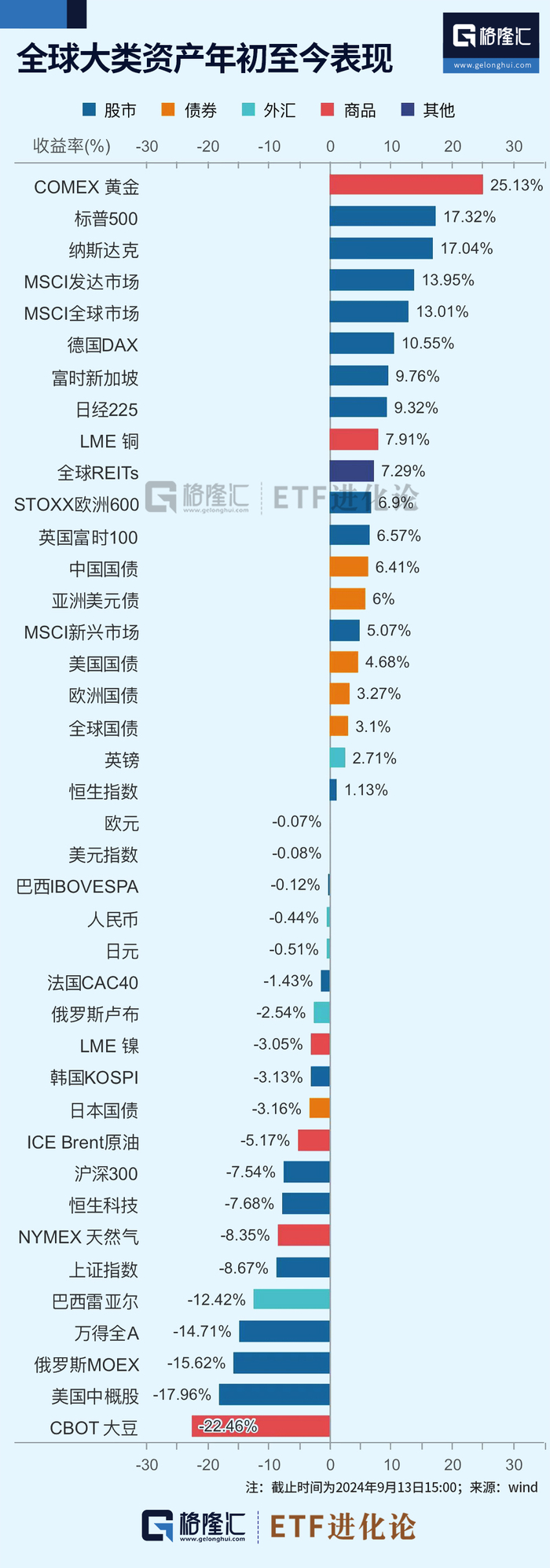 黄金大涨直接起因是美国经济数据。由于过去在美联储降息周期里,黄金在大类资产中表现亮眼,近期美国经济数据公布显示通胀压力有所缓解,因此市场认为美联储降息预期升温,带动了一些资金涌入黄金,推动金价水涨船高。