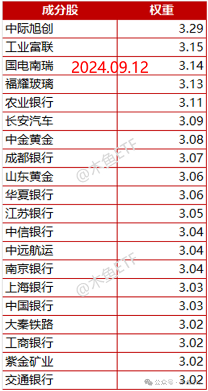 那么8月呢?金融、医药、消费等,成分股几乎是大变样了。而银行作为9月之前市场趋势最强的主题,连续收到青睐,这就是动量效应。总体上,这只ETF应该说是一只半主动量化基金,每个月持仓基本上大换血。