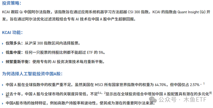 为了实现这个目标,该ETF跟踪了”QI”开发的人工智能编制的指数。在证券软件里输入“KCAI”可直接访问。