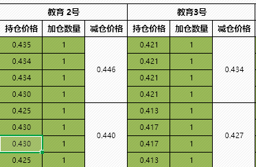 10个3%的差价我在教育2号和教育3号的建仓价体现出来了。这些数字中有10个已经是除于1.03后的价格。