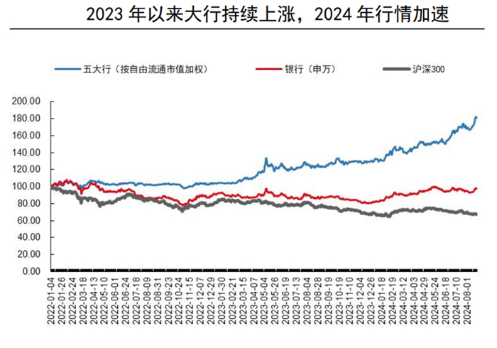 注:五大行指除邮储银行外的上市五大行。