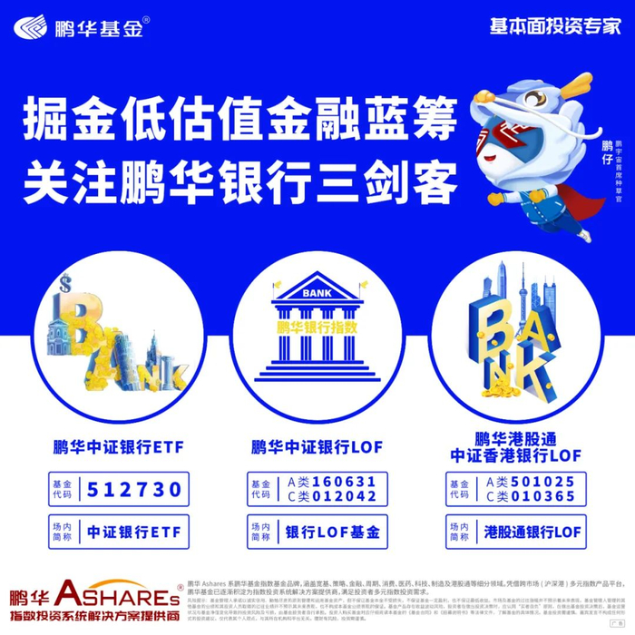 作为指数投资系统解决方案提供商,鹏华基金旗下鹏华Ashares很早便在金融领域进行指数产品布局,其中细分的银行板块上有鹏华中证银行ETF(512730)、鹏华银行LOF基金(A类160631/C类012042)、鹏华香港银行LOF(A类501025/C类010365),不仅覆盖A股和港股市场,更包含场内交易型工具ETF和场外配置型工具LOF,满足投资者布局银行板块的多样化投资需求。