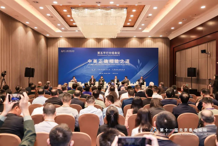 ▲德里克·格罗斯曼(右三)出席本届香山论坛分组会议“中美正确相处之道”。