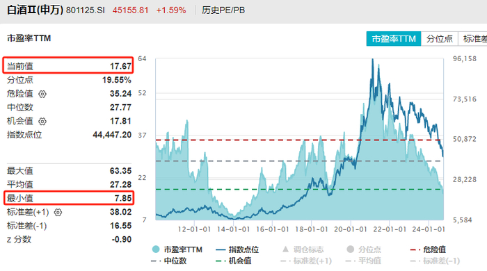 当前,白酒指数的PE是17.67倍,PE百分位19.55%,不算高。