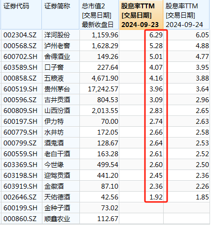 白酒的股息率怎么突然变得这么高了呢?