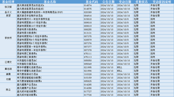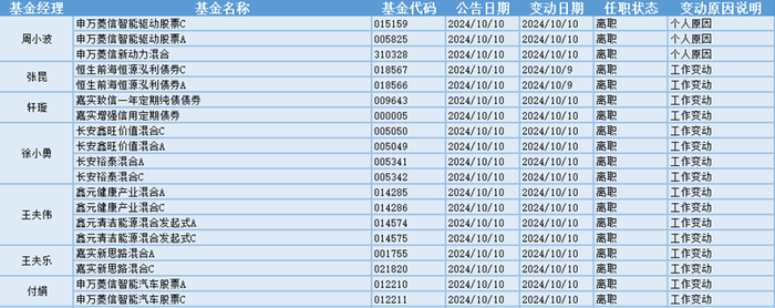 今天(10.10)有19只基金产品发布基金经理离职公告,从变动原因上来看,有1位基金经理是由于个人原因而从管理的3只基金产品中离职。有6位基金经理是由于工作变动而从管理的16只基金产品中离职。