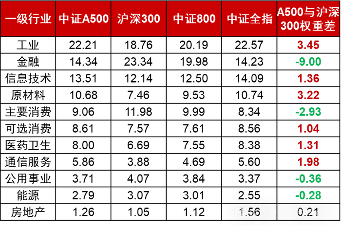 表:中证A500指数行业分布