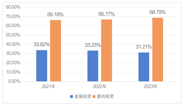 其次,多元化投资,多渠道拓展收益来源。从投资模式来看,社保基金会采取直接投资与委托投资相结合的方式开展投资运作,2023年委托投资规模有所提升。截至2023年末,社保基金直接投资资产9,407.03亿元,占基金资产总额的31.21%;委托投资资产20,738.58亿元,占基金资产总额的68.79%,较2022年上升2.02pt。(数据来源:《全国社会保障基金理事会社保基金年度报告(2021-2023)》)