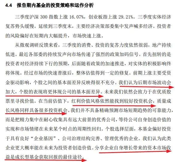 希望大家都能去好好读一读自己持仓基金的三季报,看一看自己持仓基金的调仓换股情况和基金经理的最新市场分析,这能让你更深刻的了解自己持仓基金的变化,也能让你在市场出现变动时更好的做出应对决策。
