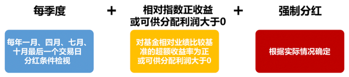 基金管理人于每年一月、四月、七月、十月最后一个交易日,对基金相对业绩比较基准的超额收益率以及基金的可供分配利润进行评价,具体分配时间、分配方案及每次基金收益分配数额等内容,基金管理人可以根据实际情况确定并按照有关规定公告。