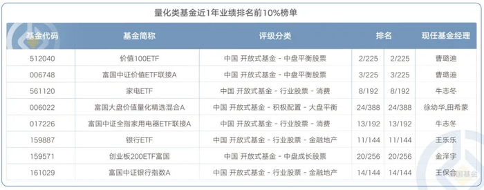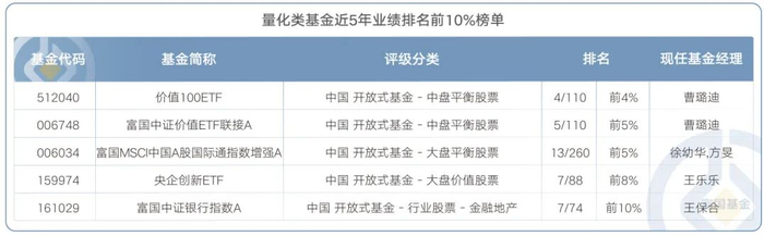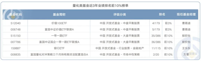 Morningstar晨星-基金排行榜数据显示,截至2024年12月31日,富国基金量化类基金近5年业绩排名进入同类前10%分位的共5只,近3年进入前10%的共6只,近1年进入前10%的共8只。