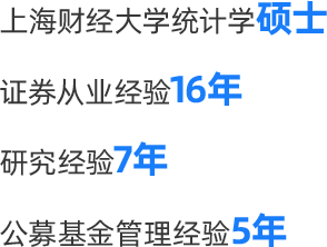 曾任职于国元证券股份有限公司、景顺长城基金管理有限公司、兴业基金管理有限公司,从事投资、研究相关工作。2018年10月加入银河基金管理有限公司,现任股票投资部总监、基金经理。