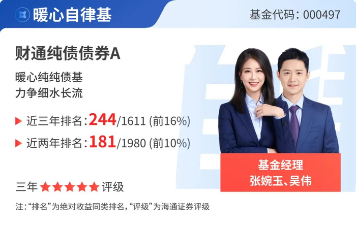 海通证券五星评级数据来源于海通证券2025年1月1日发布的《基金业绩排行榜》,截至2024.12.31,财通价值动量混合(十年/五年五星)、财通成长优选混合(五年五星)、财通福鑫定开混合发起(五年五星)、财通智慧成长混合(三年五星)、财通新兴蓝筹混合(三年五星)、财通新视野混合(五年/三年五星)、财通多策略升级(LOF) (三年五星)、财通景气行业混合(三年五星)、财通安瑞短债债券(五年五星)、财通聚利债券(五年/三年五星)、财通兴利12月定开债券发起(三年五星)、财通纯债债券(三年五星)、财通恒利纯债(三年五星)、财通多利债券(三年五星)。
