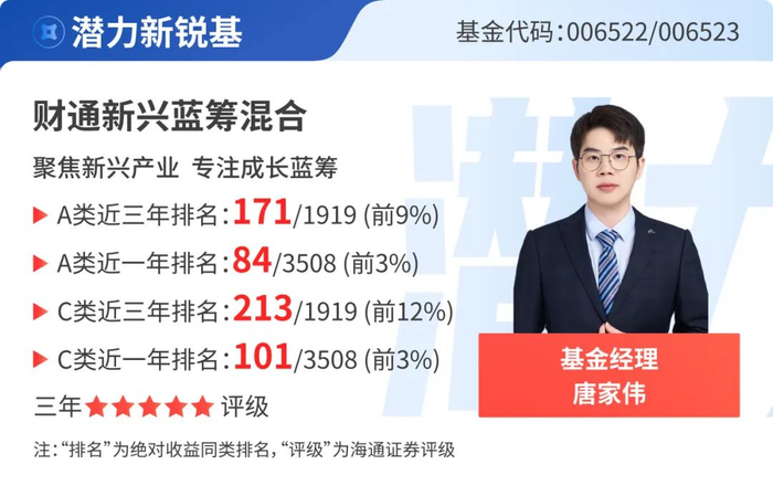 财通智慧成长混合A近三年(2022.01.01-2024.12.31)业绩排名位列同类(强股混合型)113/1919,近两年(2023.01.01-2024.12.31)业绩排名位列同类(强股混合型)313/2868,近一年(2024.01.01-2024.12.31)业绩排名位列同类(强股混合型)11/3508。