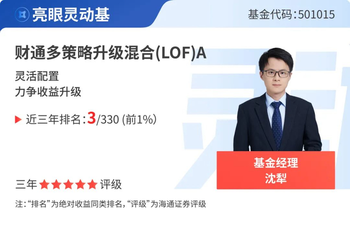 财通多策略升级混合(LOF)A近七年(2018.01.01-2024.12.31)业绩排名位列同类(偏股混合型)57/107,近五年(2020.01.01-2024.12.31)业绩排名位列同类(偏股混合型)71/195,近三年(2022.01.01-2024.12.31)业绩排名位列同类(偏股混合型)3/330,近两年(2023.01.01-2024.12.31)业绩排名位列同类(偏股混合型)37/380,近一年(2024.01.01-2024.12.31)业绩排名位列同类(偏股混合型)161/412。
