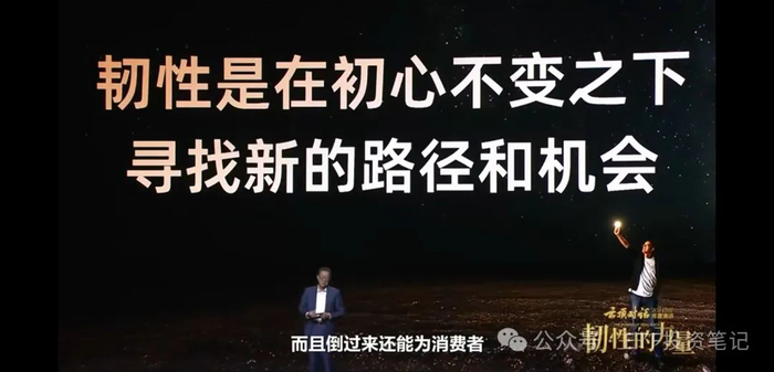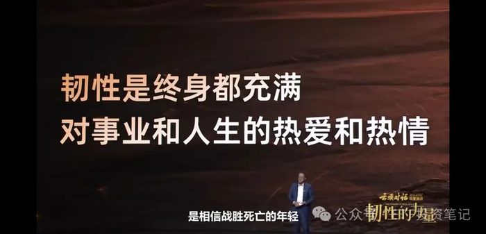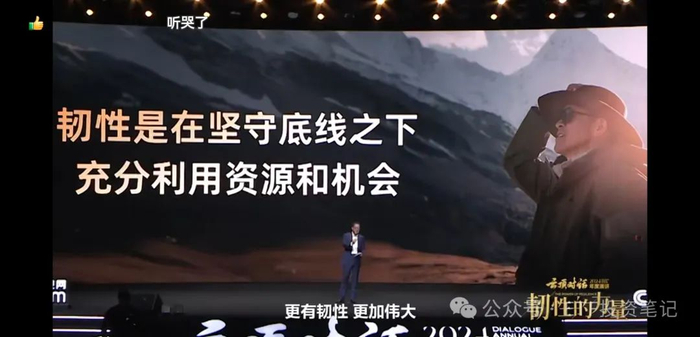 大家也都知道在几年前新东方的业务几乎被清零以后,其实当时我可以有两个选择。一个选择就是趁机退休周游世界,但是后来我觉得不能放弃,因为人生是有锚点的,这个锚点你必须让自己最后人生结束的时候回头去看的时候,你不会后悔和遗憾。所以当我问自己这个问题当你现在彻底放弃以后,作为一个60岁的老人,你80岁再回来看你放弃的这一刻,你会不会遗憾,我认为会遗憾的,因为坚持一直就是我的特点。所以大家就知道后来就有了东方甄选,今天其实发展的非常不错,每年能带农产品能带一百多亿,能够帮助到很多农业企业或者是农民的生计。所以说你不放弃是最好的选择。所以我觉得韧性是寻找出路而不是放弃前行。