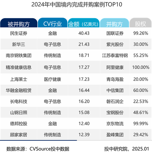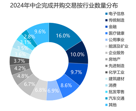 2024年,并购案例主要集中在电子信息、传统制造、金融及医疗健康。