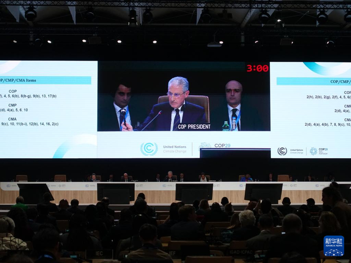 ▲2024年11月23日,COP29主席、阿塞拜疆生态和自然资源部长穆赫塔尔·巴巴耶夫就一项决议通过敲锤。