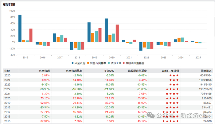按规模变动从低到高排序的话,谢治宇管理的兴全合润全年规模下降2.06亿元。截至2024年年末,兴全合润年末资产净值从2023年年末的230.76亿元略减至228.7亿元。若相较2021年顶峰时的334.06亿元,三年过后该基金规模已大幅缩水超过三成。业绩方面,兴全合润在保持较大规模的同时,2024年仍然实现了8.96%的收益率,同类排名1189/4095。