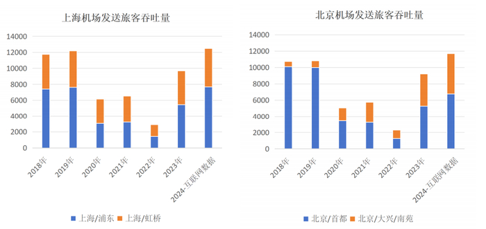 2024年是民航迅速“回血”的一年,发送人次、起降架次同比+17.7%、+10.7%,较2019年分别增长+10.5%、+3.8%;从2025年春运数据看,客流量还有提升,上海等地的出入境流量还有较明显的增长,国际客流恢复的趋势还在延续。