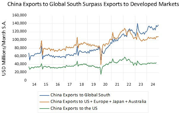 ▲中国对全球南方国家市场的出口超过对发达国家市场的出口。图源亚洲时报(Asia Times)
