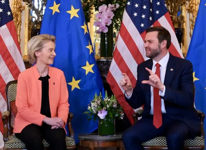 ▲2月11日,欧盟委员会主席冯德莱恩在巴黎与美国副总统万斯举行会晤。