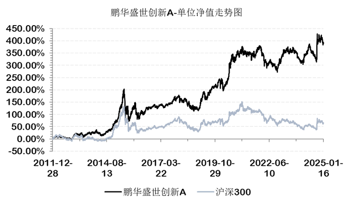 截至2025年1月21日,其管理13年的鹏华盛世创新A任职回报达386.46%,年化回报达12.86%,在同期偏股混合型基金中名列前茅。2024年,鹏华盛世创新A的全年收益率达21.73%,大幅跑赢大盘。