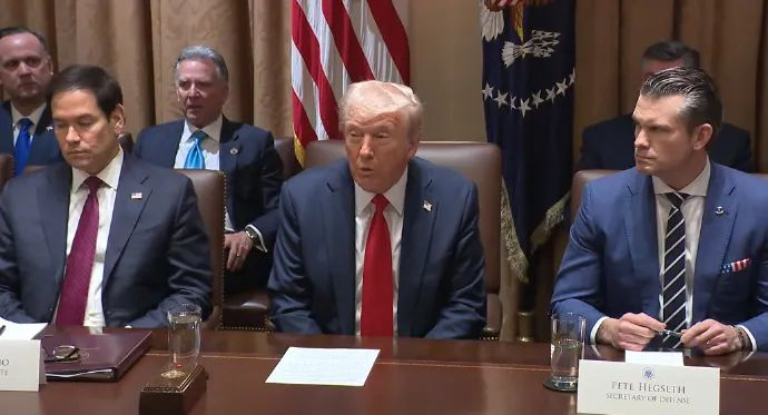 ▲当地时间26日,特朗普在首次内阁会议上向记者表示,将对欧盟汽车及其他各类商品征收25%的关税。