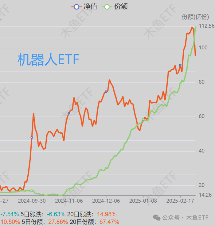从562500这只机器人ETF的份额数据来看,周五暴增超过10%,份额一举突破100亿份!另外一只机器人ETF同样有相当增幅,场外资金热情依旧!