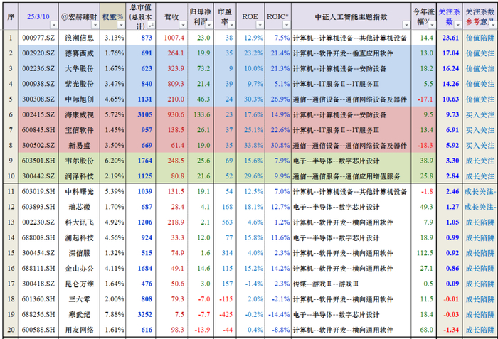 成分股权重Top20按宏赫关注系数排序
