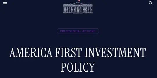 ▲2月21日,特朗普签署“美国第一”投资政策备忘录,下令限制中国对美国人工智能等关键领域的投资。