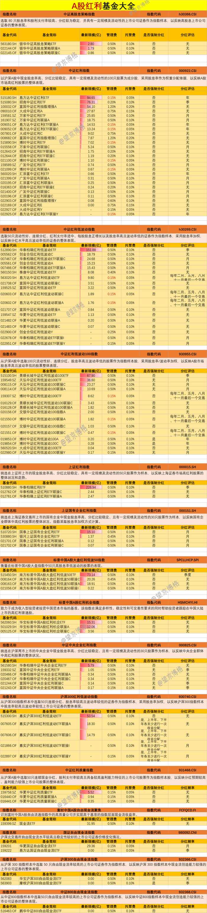 下图里新增了沪深300自由现金流指数及相关ETF、中证800自由现金流指数及相关ETF,新增的现金流ETF都尚未上市,目前只有代码,估计很快了,节后差不多就快上市了。