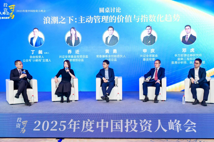 在当前市场环境下,主动管理有哪些可为空间?指数化浪潮又将如何演绎?如何看待当前科技趋势的价值与机遇?4月28日,在兴证全球基金、财联社、腾讯新闻主办的2025年度中国投资人峰会上,兴证全球基金投资总监、基金管理部总监乔迁,兴证全球基金基金经理申庆,上海常春藤私募基金管理有限公司创始合伙人、投资总监黄勇,申万宏源证券研究所金融工程部总监、首席分析师、执行总经理邓虎,自由投资人、公众号“小鲜传”主理人丁昶等嘉宾,围绕上述话题展开了讨论,以下为该圆桌讨论的精彩内容。