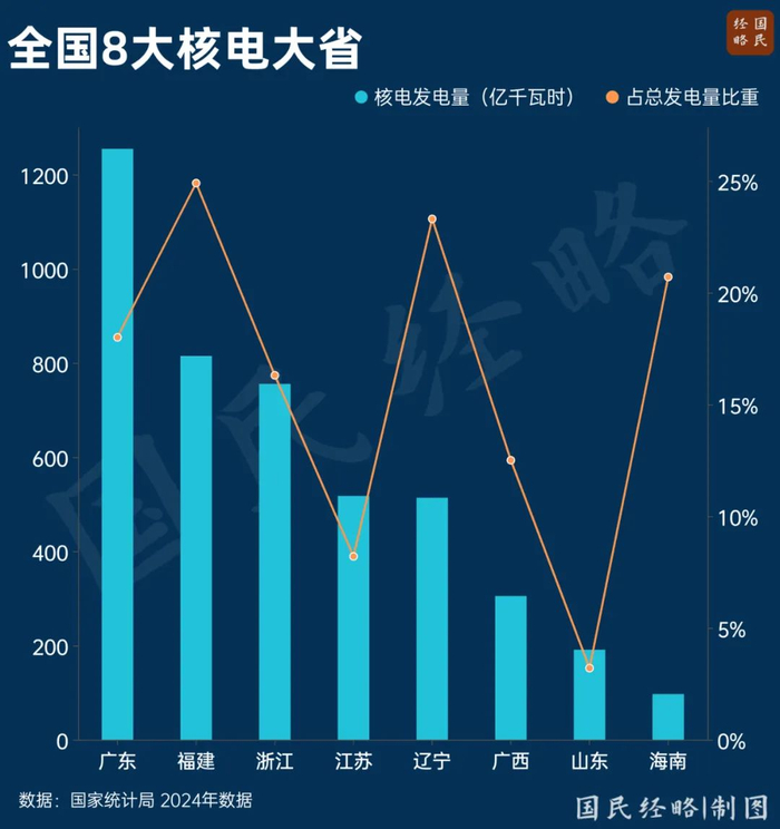 众所周知,我国水电第一大省是四川,火力、风电和光伏发电第一大省是内蒙古,那么核电第一大省就是广东。
