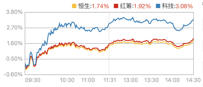 昨日,港股三大指数高开高走,恒生科技指数收涨3.08%,恒指涨1.74%,国指涨1.92%。