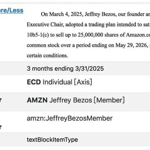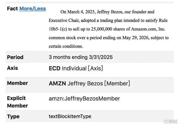 文件显示,贝索斯已于2025年3月正式启动该计划,交易时间为2025年3月4日至2026年5月29日。