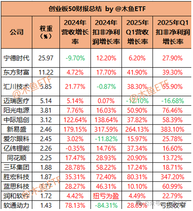如上图,我们总结了科创50前15大成分股在24年报和25年Q1的营收和净利润增长数据。
