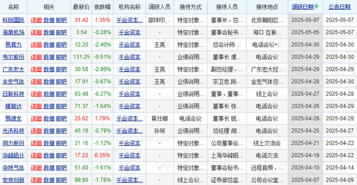 有意思的是,截至今年年内,千合资本依然持续出现于上市公司调研名单中。